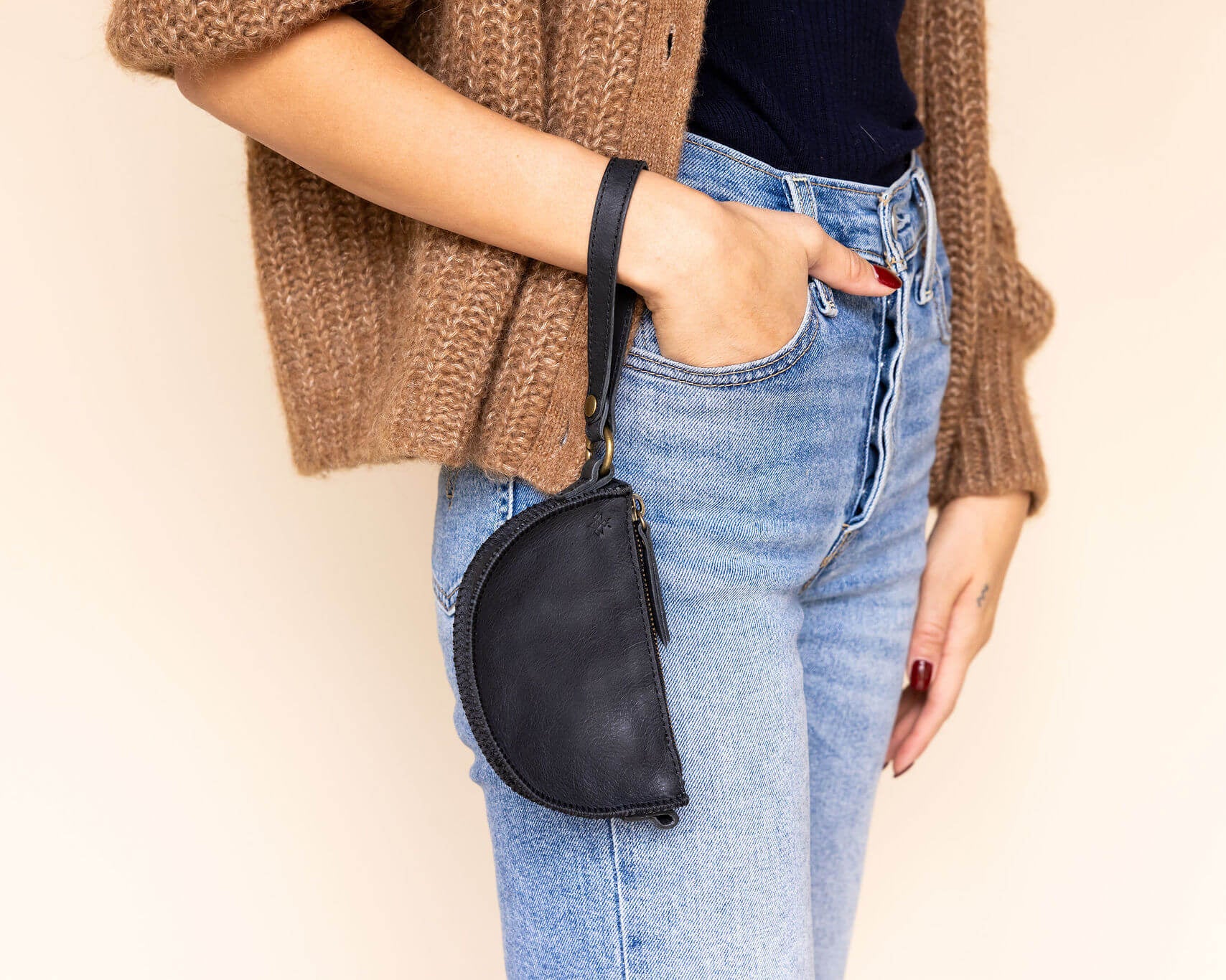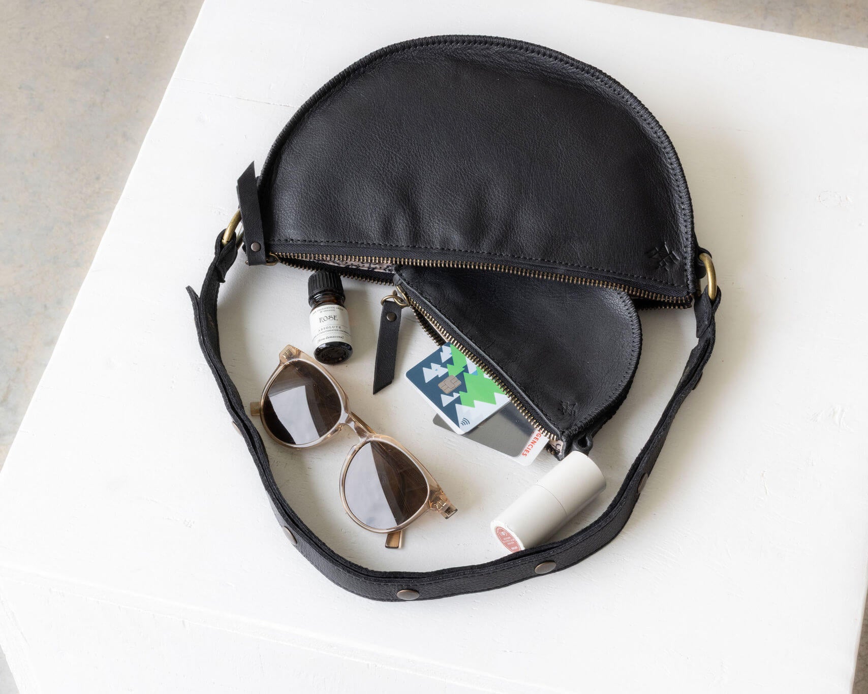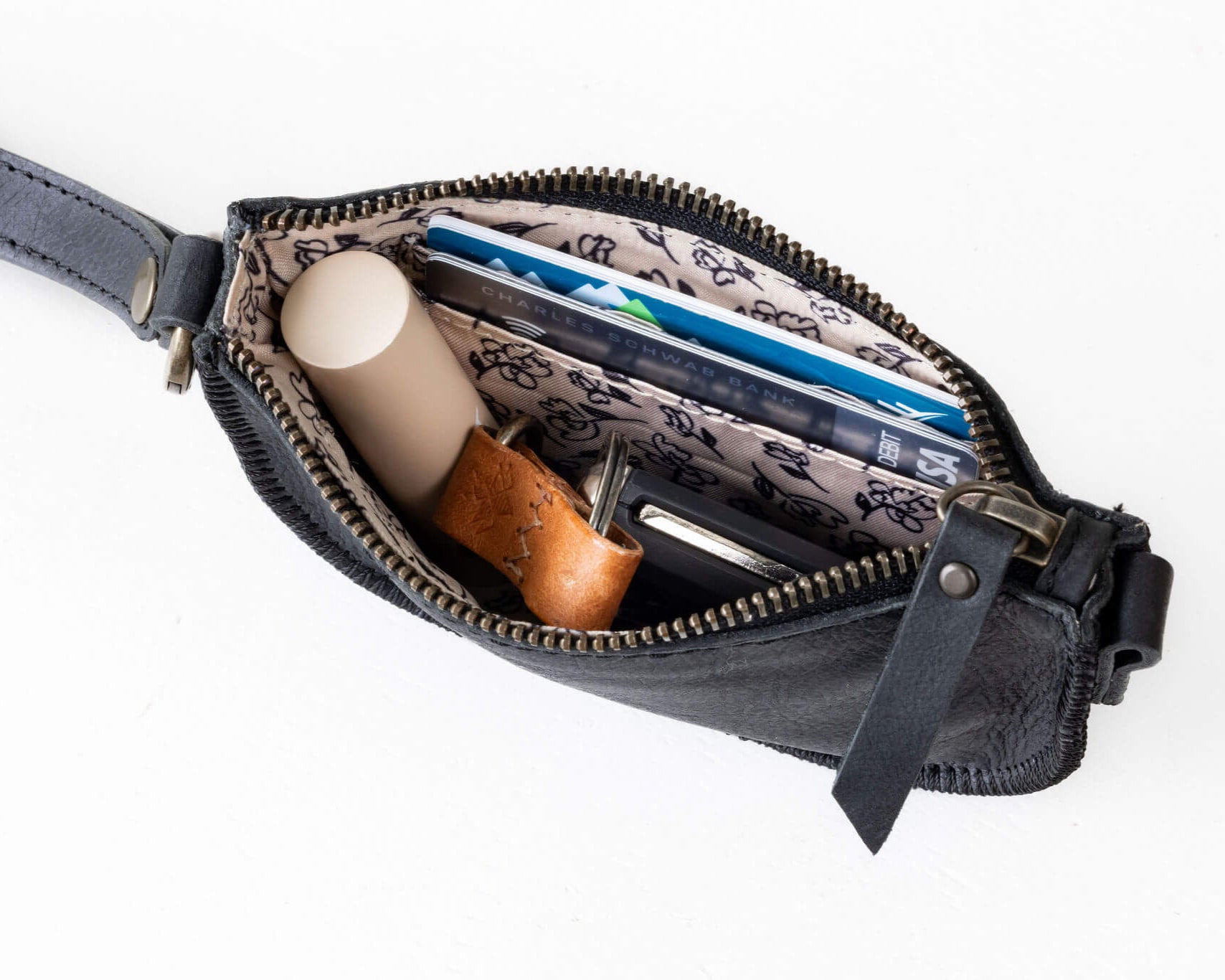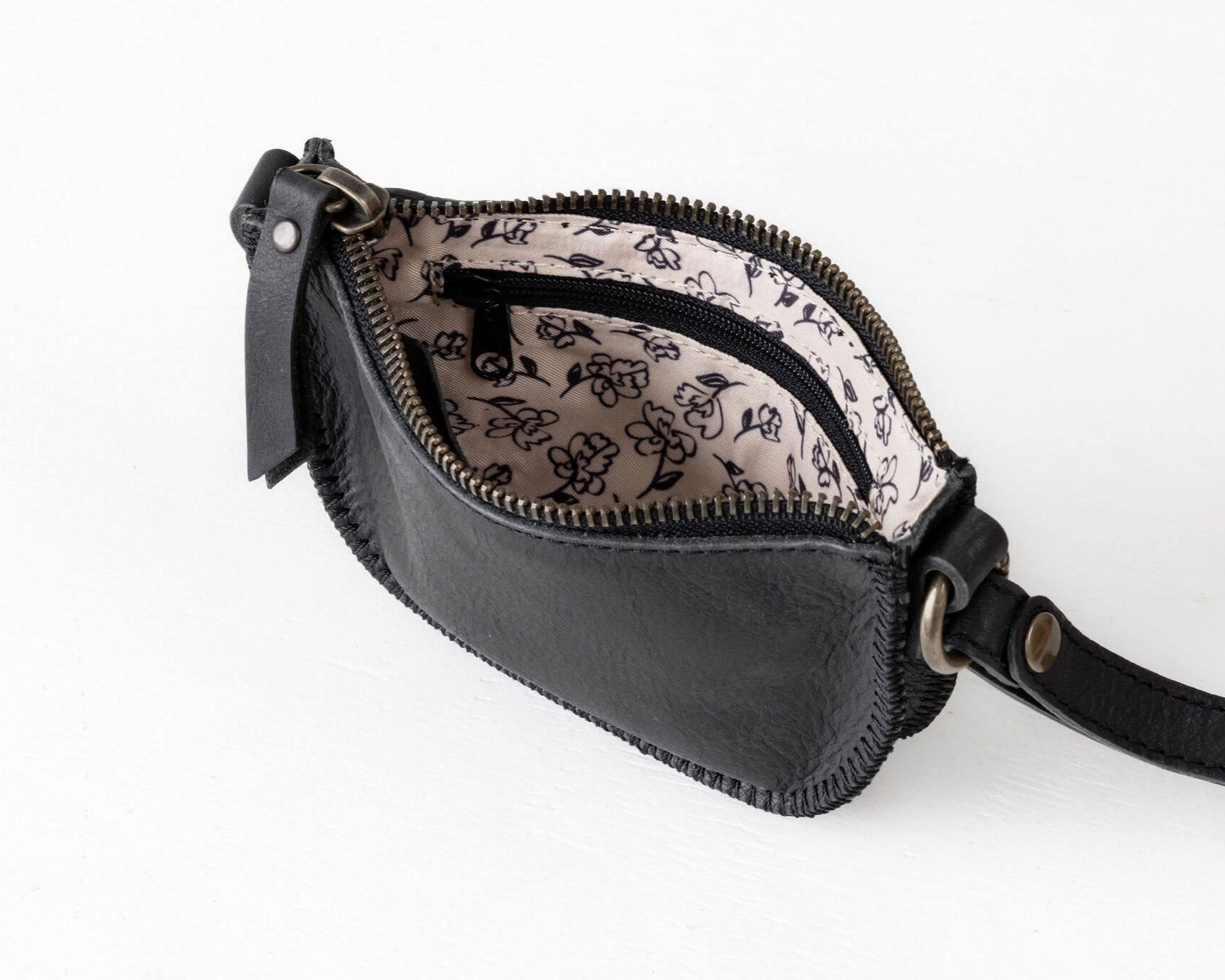 The same black pebbled leather you know and love, in our tiniest size yet. The ultimate go-with-everything accessory. The perfect compact size keeps cards, cash, change, lipstick, and keys within easy reach. Carry it on its own as a clutch, clip it to your Bee for extra space, keep it tucked inside as an organizer, or add our patented Snap Straps to transform it into a chic mini crossbody or kids’ bag.
