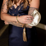 Meet the Gold Tassel — a playful, polished accent handcrafted in soft metallic gold leather. Its warm, luminous finish adds a subtle glow to any Lyons Leather Co. pouch, instantly elevating your everyday look. Easy to clip on and designed to last, the Gold Tassel moves beautifully with you — whether you’re running errands, dressing up for a night out, or adding a little shine to your daily rotation.