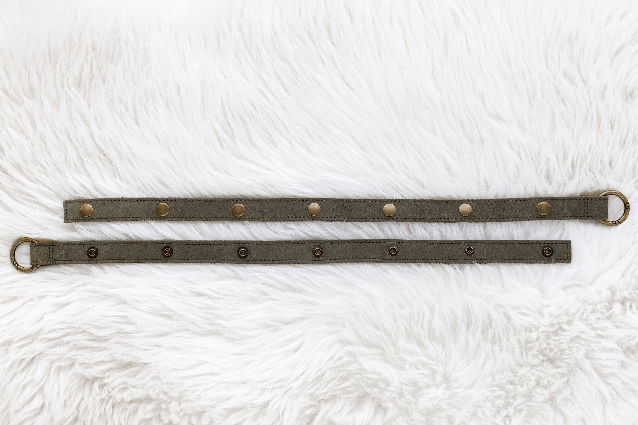 Our newest leather straps for bags in a gorgeous Moss Suede. Every set of straps comes with two antique brass split o-rings for an adjustable strap that lets you wear your Bee three ways: as a belt, sling, or shoulder bag. Handcrafted with the same gorgeous suede as our Moss Collection. (Bag not included).