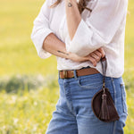 Our fabulous full-grain Espresso leather in the cutest little pouch. Perfectly sized for your cards, cash, change, lipstick, and keys. Clip it to your Bee for quick access, slip it inside to keep your essentials in order, or add our patented Snap Straps for an effortlessly chic mini crossbody or kids’ bag. A small companion with timeless character.