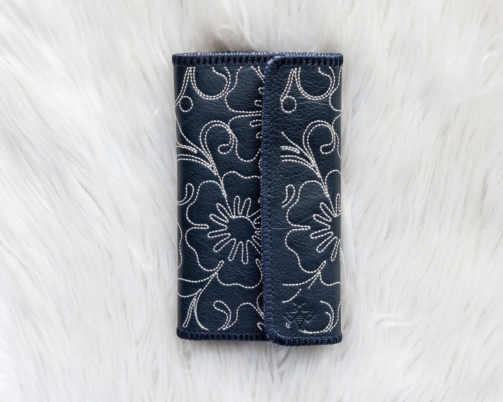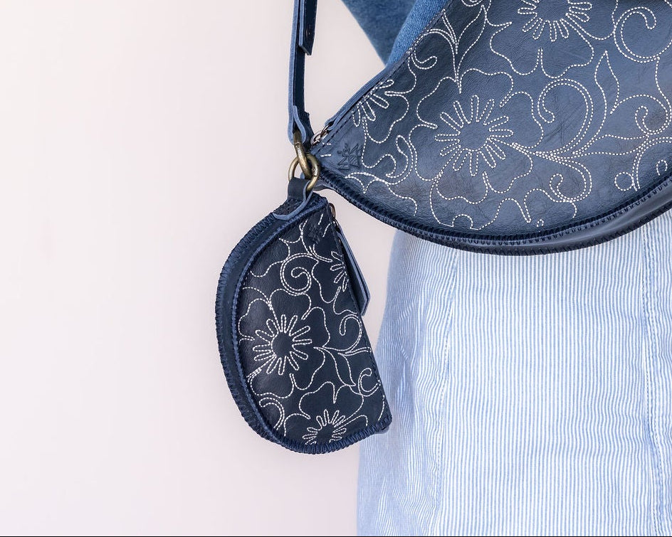Rich full-grain Navy blue leather with a gorgeous floral embroidery stitched into one side. Don't miss our first-ever Limited Edition Mother’s Day Capsule Collection.