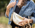 Over the past 2 years, we've worked hard to perfect the balance between soft buttery leather with a little bit of structure for longevity and support. Starting in Spring 2024, our pouches are all unstructured, giving them that buttery soft, boho chic, forms to your body kind of feel. Depending on the color, we use a mix of pebbled leather and vegetable-tanned mid weight leather that is all supported appropriately to last forever and break in beautifully.
