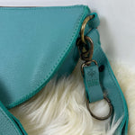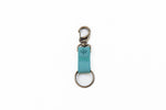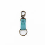 Our newest limited edition color makes finding your keys easy. Handcrafted with gorgeous pebbled leather and antique brass hardware, this turquoise leather keychain is designed to hook onto the o-ring of your pouch for easy access.