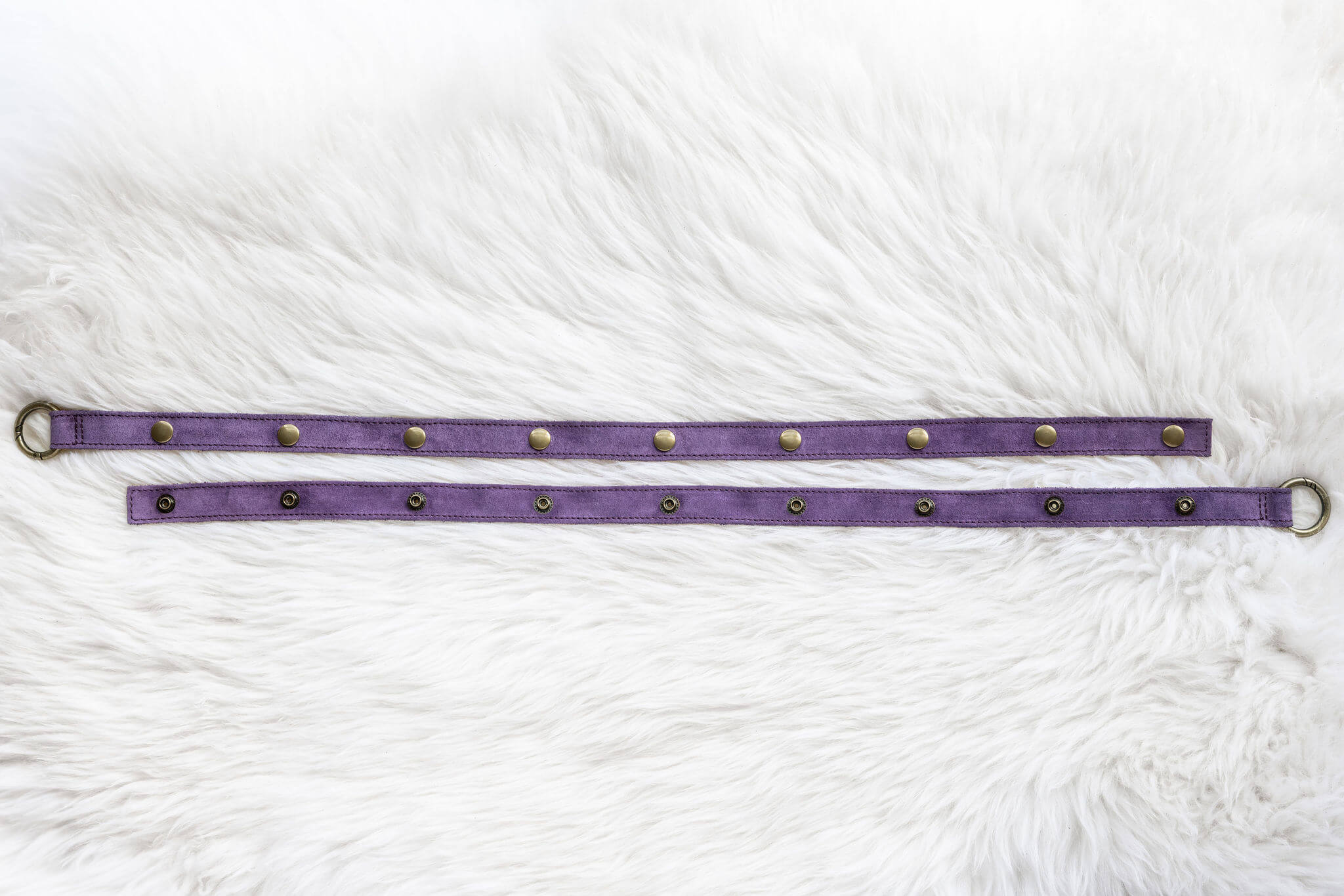 The Extended Snap Straps in Violet Suede.