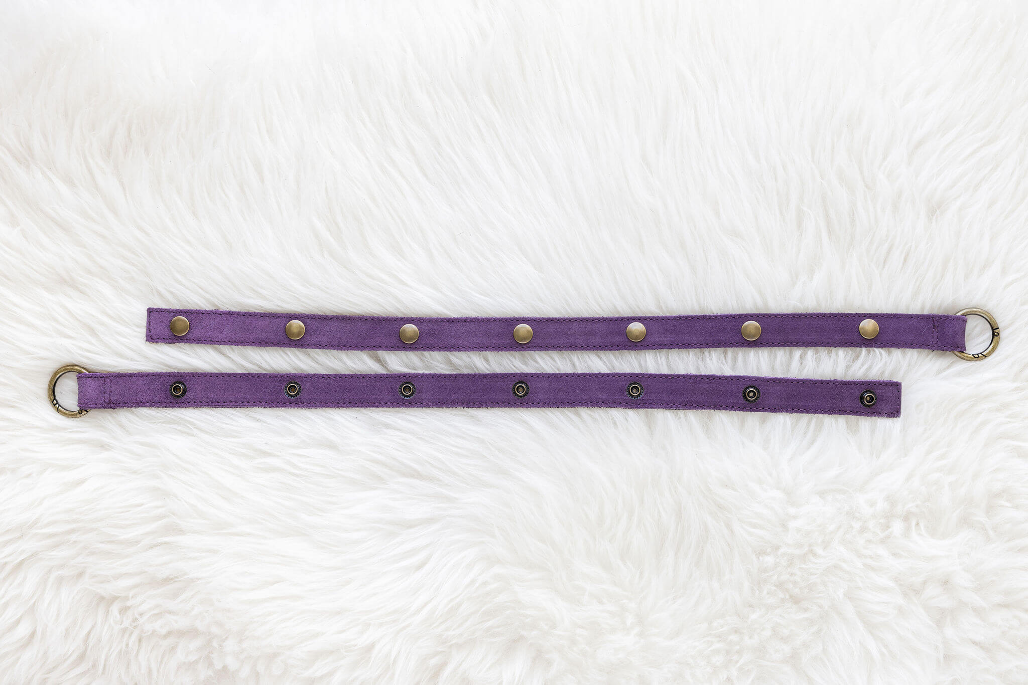 Our newest leather straps for bags in a gorgeous violet suede. Every set of straps comes with two antique brass split o-rings for an adjustable strap that lets you wear your Bee three ways: as a belt, sling, or shoulder bag. Handcrafted with the same gorgeous suede as our Violet Collection. (Bag not included).