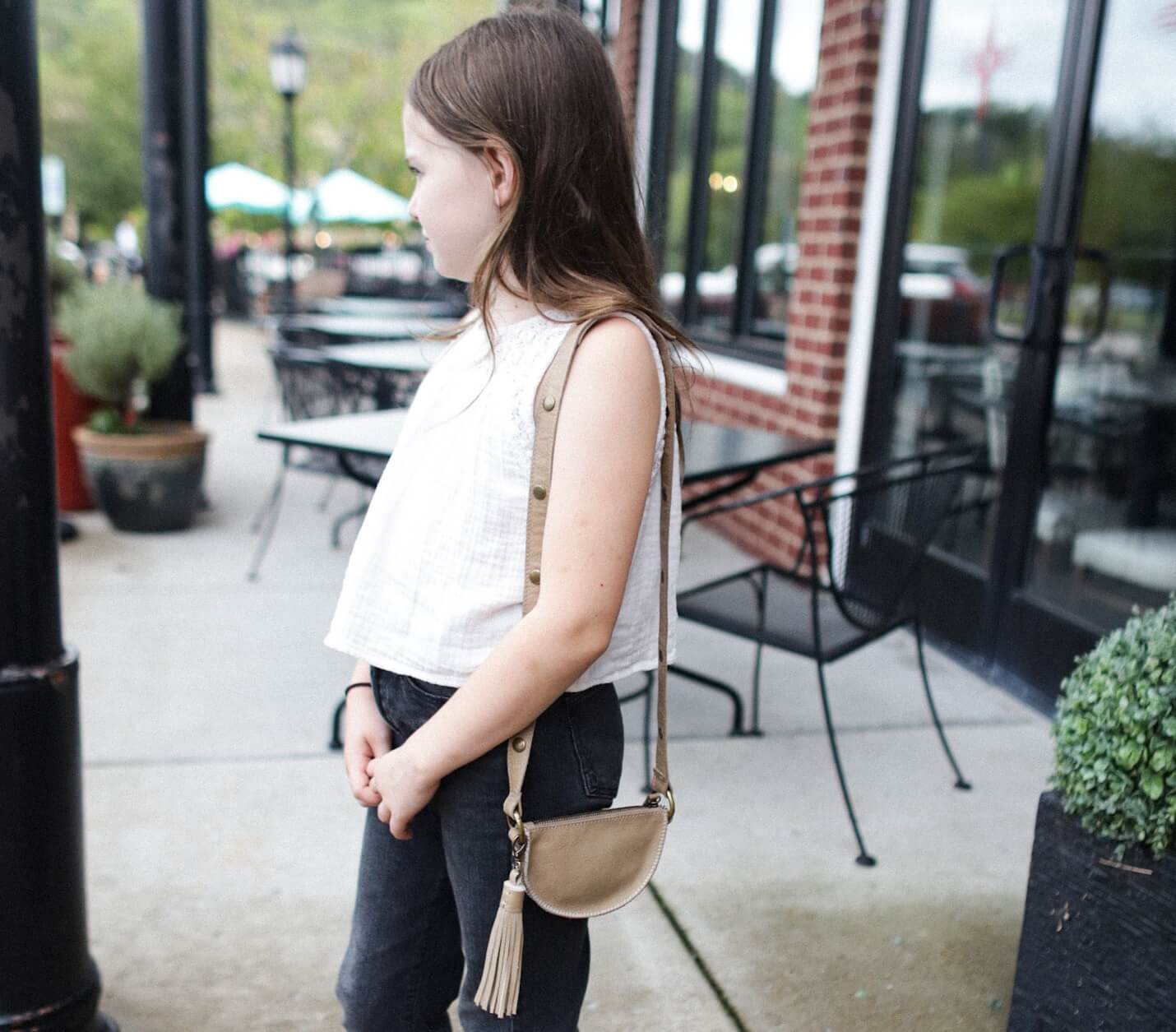 Our tiniest pouch in a stunning champaign color, available only for a limited time. Handcrafted from premium full-grain leather, the Seashell Baby Bee holds your cards, cash, change, lipstick, and keys for quick access on the go. Carry it as a clutch, clip it to your Bee bag, tuck it inside as an organizer, or pair it with our patented Snap Straps to wear as a mini crossbody or kids’ bag.