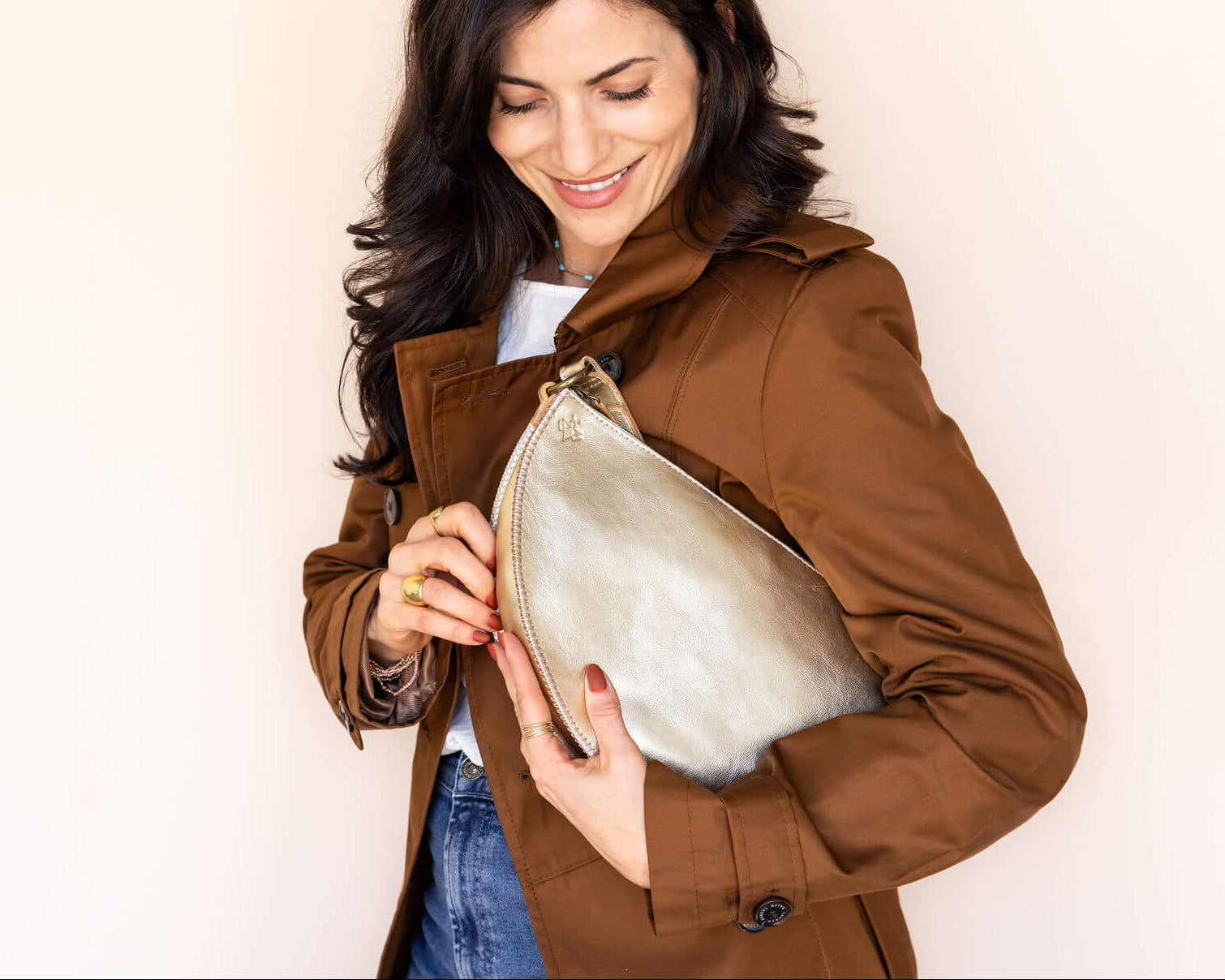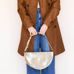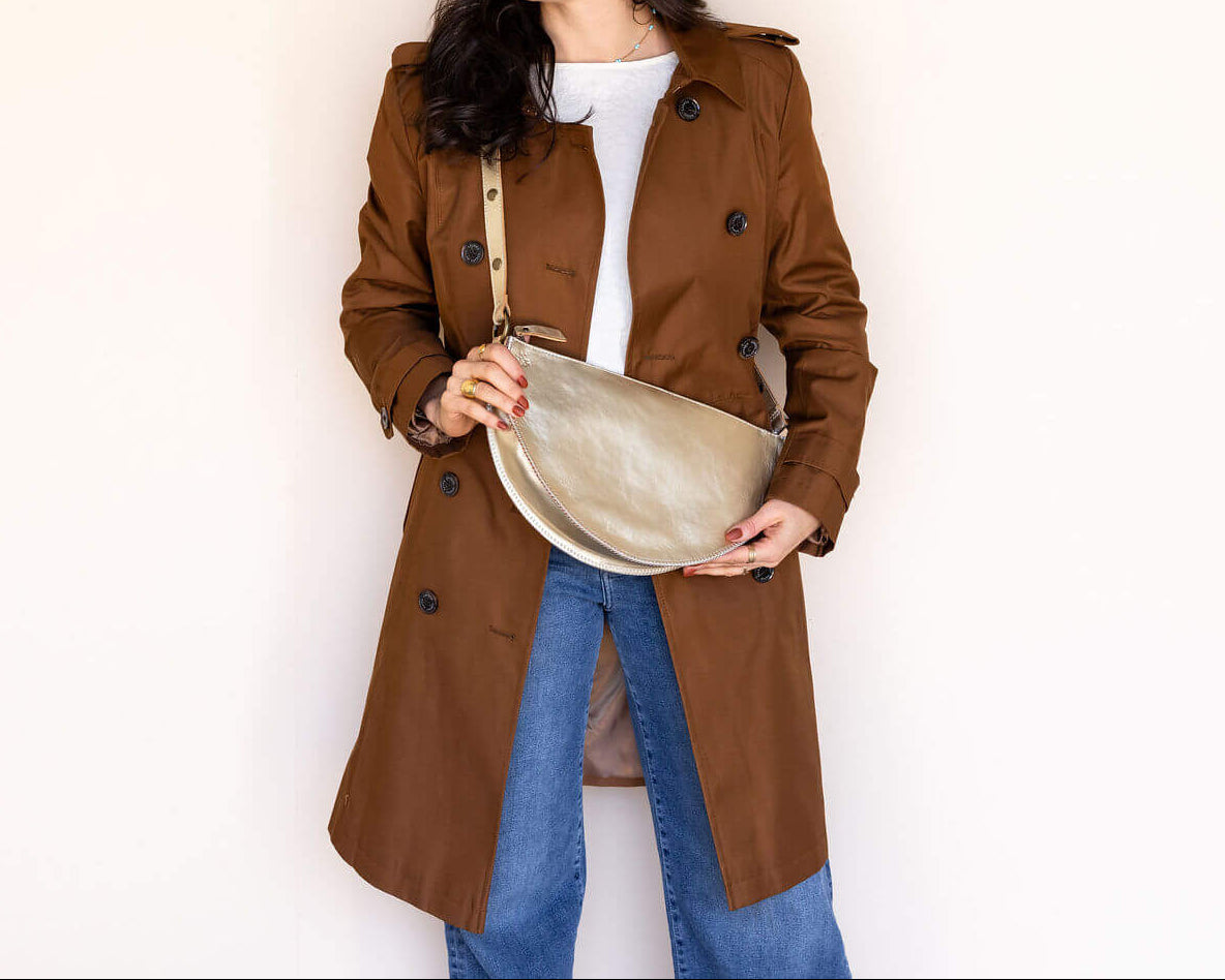 Meet Gold Queen Bee — our largest convertible pouch, handcrafted in soft metallic gold leather that glows with quiet elegance. This shimmering neutral adds a touch of sophistication to everything you wear, whether you're heading to work, traveling light, or elevating an evening look. Thoughtfully designed with extra room for all the things — tablet, sunglasses, wallet, snacks, kid essentials.
