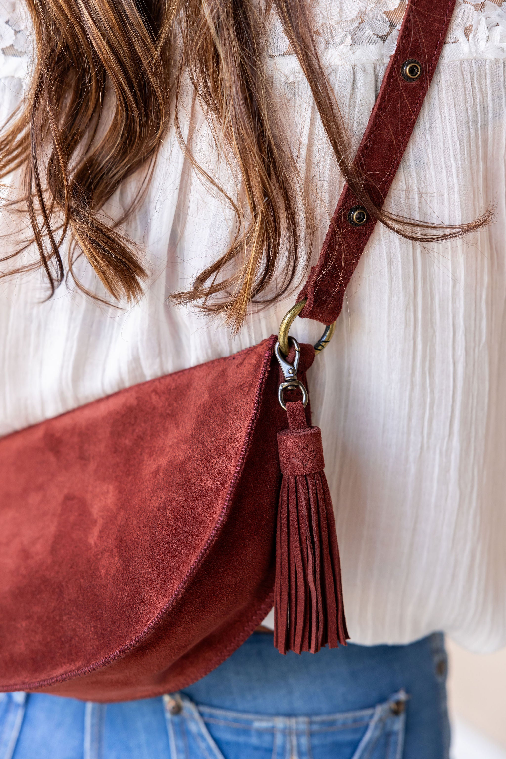 The Sienna Suede Tassel adds a touch of warmth and texture to your favorite pouch. Handcrafted in our treated, water-resistant Sienna Suede — a rich terracotta hue inspired by sunbaked clay and golden light — it’s designed to complement any pouch, keychain, or strap. A small detail that adds a lot of sass.