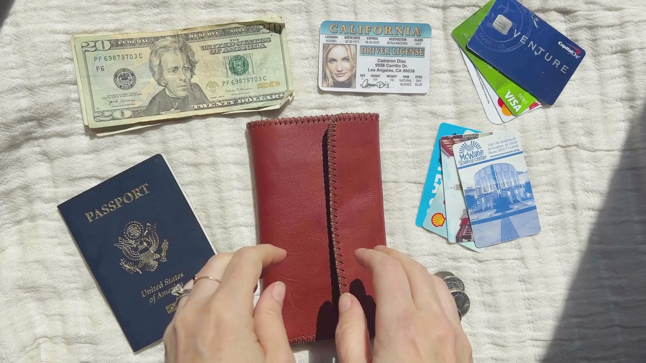 Perfect for international travel or as a larger everyday wallet. Featuring pockets for your passport, small notebook or checkbook, up to 10 cards, cash (lays flat), change and a clear ID window.
