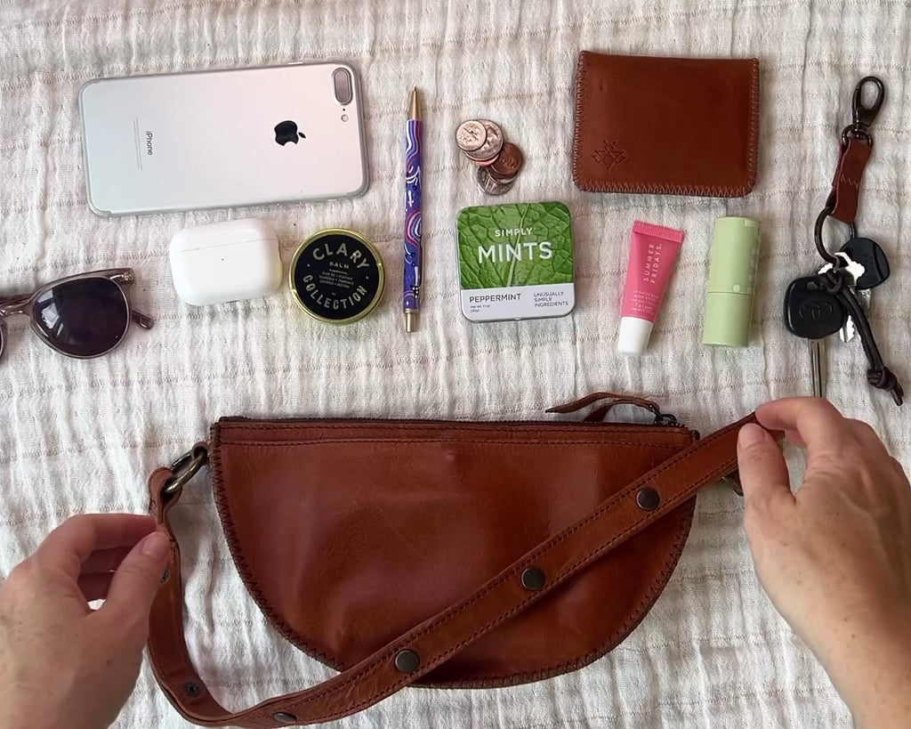 Over the past 2 years, we've worked hard to perfect the balance between soft buttery leather with a little bit of structure for longevity and support. Starting in Spring 2024, our pouches are all unstructured, giving them that buttery soft, boho chic, forms to your body kind of feel. Depending on the color, we use a mix of pebbled leather and vegetable-tanned mid weight leather that is all supported appropriately to last forever and break in beautifully.