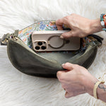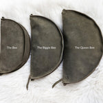 Over the past 2 years, we've worked hard to perfect the balance between soft buttery leather with a little bit of structure for longevity and support. Starting in Spring 2024, our pouches are all unstructured, giving them that buttery soft, boho chic, forms to your body kind of feel. Depending on the color, we use a mix of pebbled leather and vegetable-tanned mid weight leather that is all supported appropriately to last forever and break in beautifully.