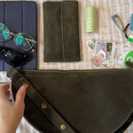 Over the past 2 years, we've worked hard to perfect the balance between soft buttery leather with a little bit of structure for longevity and support. Starting in Spring 2024, our pouches are all unstructured, giving them that buttery soft, boho chic, forms to your body kind of feel. Depending on the color, we use a mix of pebbled leather and vegetable-tanned mid weight leather that is all supported appropriately to last forever and break in beautifully.