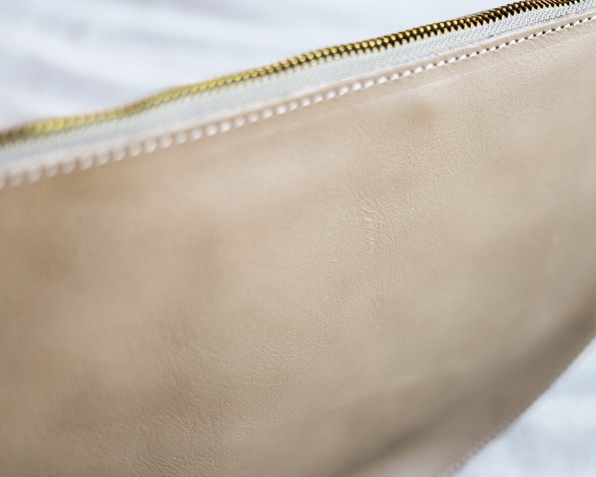 Over the past 2 years, we've worked hard to perfect the balance between soft buttery leather with a little bit of structure for longevity and support. Starting in Spring 2024, our pouches are all unstructured, giving them that buttery soft, boho chic, forms to your body kind of feel. Depending on the color, we use a mix of pebbled leather and vegetable-tanned mid weight leather that is all supported appropriately to last forever and break in beautifully.