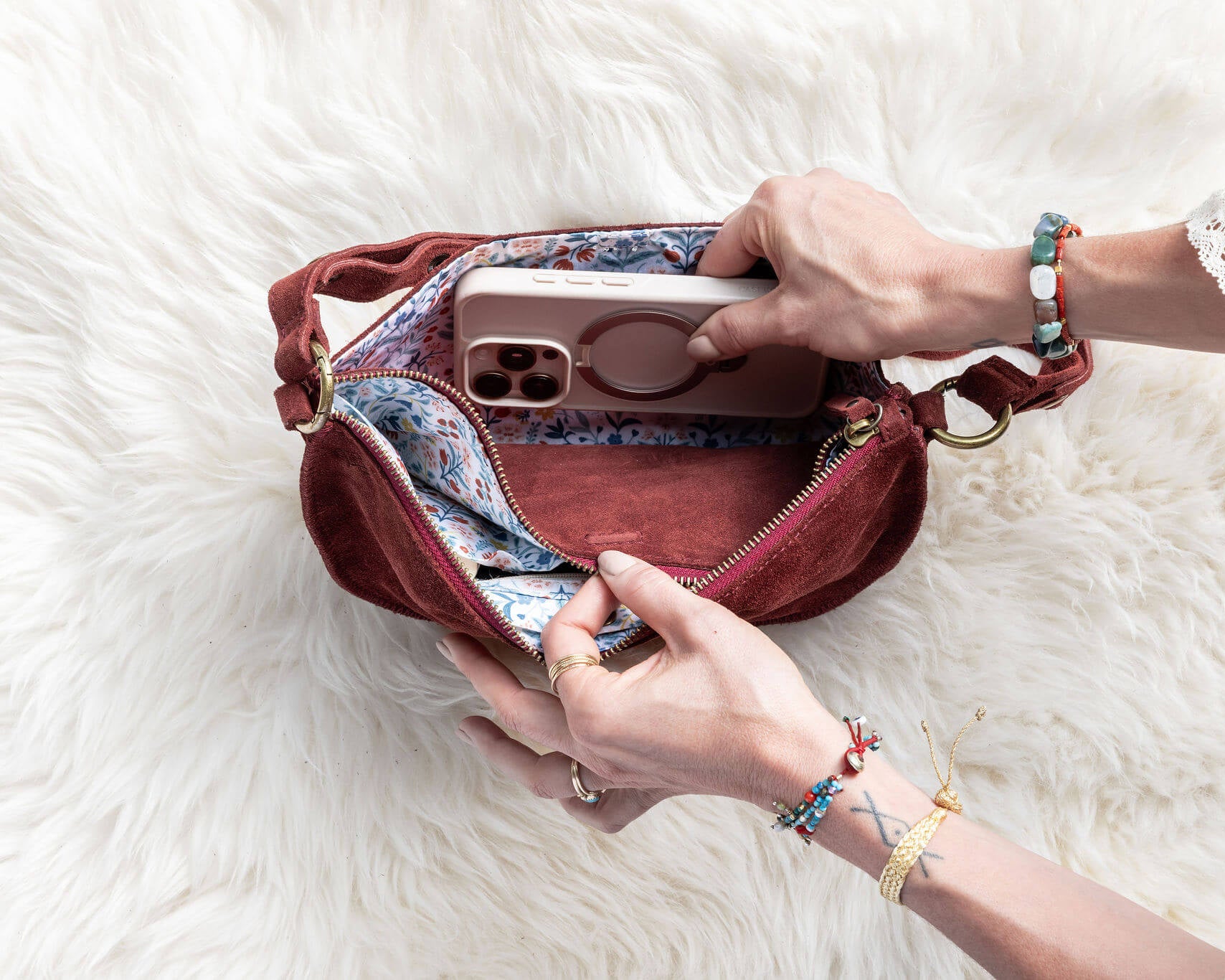 Over the past 2 years, we've worked hard to perfect the balance between soft buttery leather with a little bit of structure for longevity and support. Starting in Spring 2024, our pouches are all unstructured, giving them that buttery soft, boho chic, forms to your body kind of feel. Depending on the color, we use a mix of pebbled leather and vegetable-tanned mid weight leather that is all supported appropriately to last forever and break in beautifully.