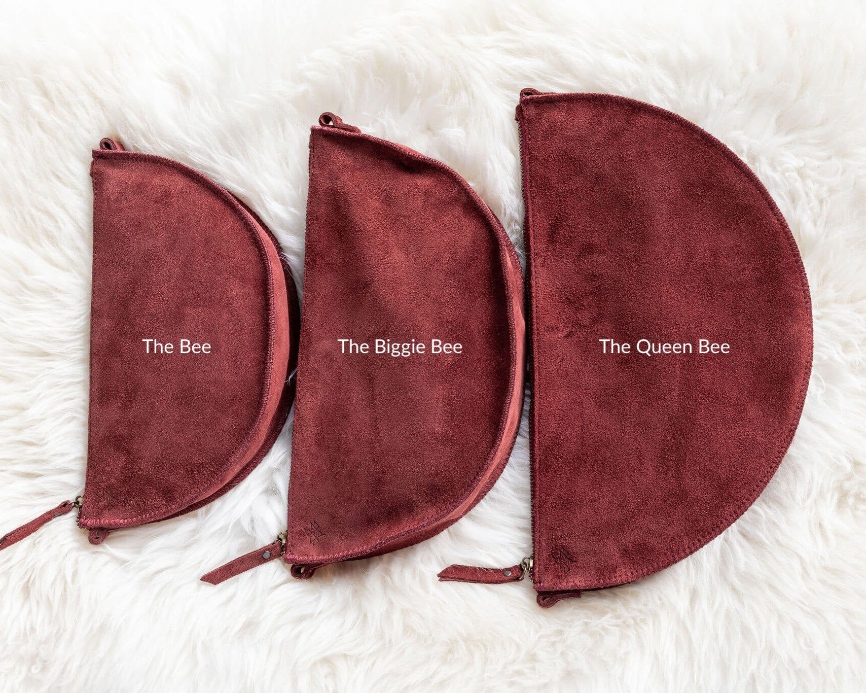 The Biggie Bee is our mid-sized convertible pouch measuring 12" x 6.5" x 3.15." It is big enough to fit your Travel Wallet or Daily Wallet iPhones of all sizes, glasses (one pair), chapstick + lipstick, hand cream/sanitizer, snacks, and other medium-sized essentials keys.