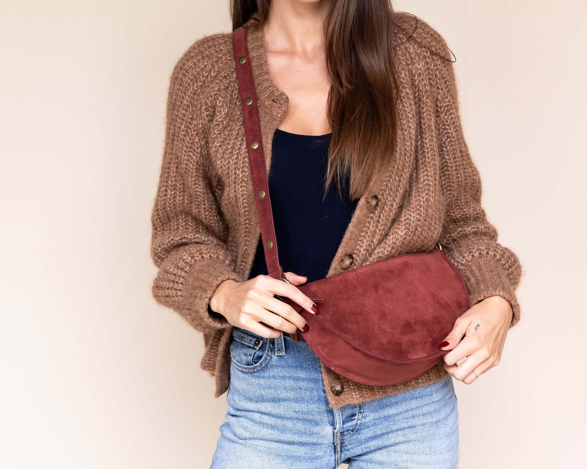 Over the past 2 years, we've worked hard to perfect the balance between soft buttery leather with a little bit of structure for longevity and support. Starting in Spring 2024, our pouches are all unstructured, giving them that buttery soft, boho chic, forms to your body kind of feel. Depending on the color, we use a mix of pebbled leather and vegetable-tanned mid weight leather that is all supported appropriately to last forever and break in beautifully.