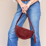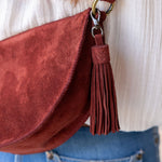 The Sienna Suede Tassel adds a touch of warmth and texture to your favorite pouch. Handcrafted in our treated, water-resistant Sienna Suede — a rich terracotta hue inspired by sunbaked clay and golden light — it’s designed to complement any pouch, keychain, or strap. A small detail that adds a lot of sass.