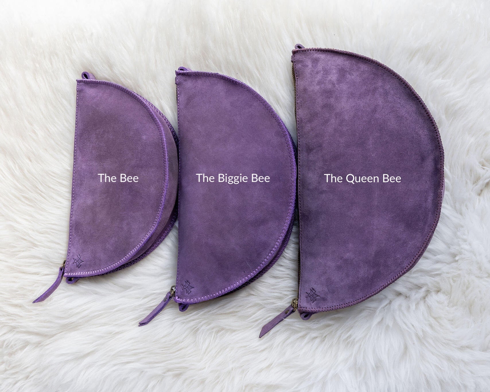 Meet the Violet Suede Queen Bee — our largest convertible pouch, designed to fit more without losing its minimalist charm. Handcrafted in our signature water-resistant suede, this bold violet hue adds a playful pop that feels elevated, not loud. It comfortably carries an iPad mini, Kindle, or daily essentials, making it perfect for travel, workdays, or anyone who needs a little extra space.
