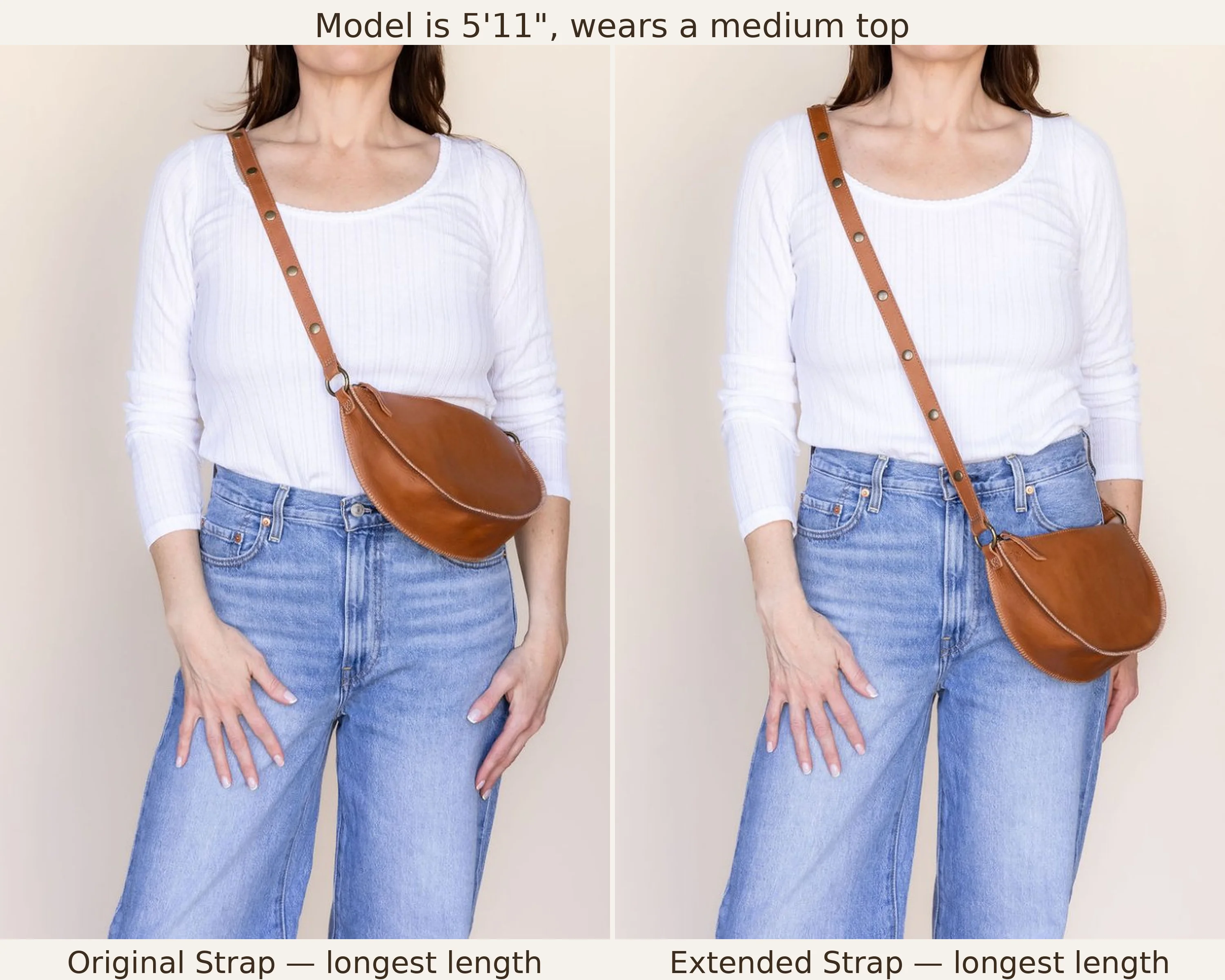 Over the past 2 years, we've worked hard to perfect the balance between soft buttery leather with a little bit of structure for longevity and support. Starting in Spring 2024, our pouches are all unstructured, giving them that buttery soft, boho chic, forms to your body kind of feel. Depending on the color, we use a mix of pebbled leather and vegetable-tanned mid weight leather that is all supported appropriately to last forever and break in beautifully.